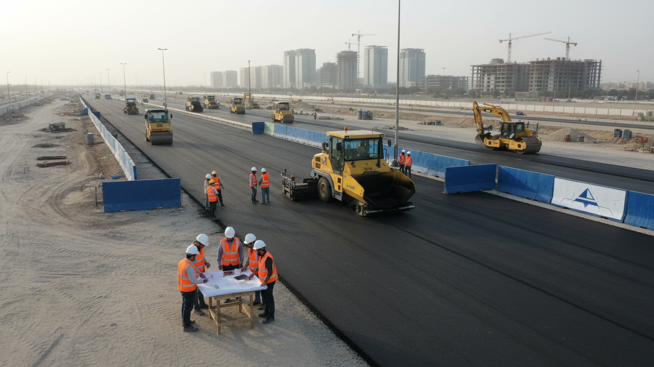 Our Civil & Asphalt Department provides end-to-end services including: Road construction & rehabilitation Asphalt paving, milling & resurfacing Base course & sub-base preparation Kerbstone, sidewalks & interlock works Drainage & surface water systems Earthworks, grading & compaction Traffic safety & road marking preparation
